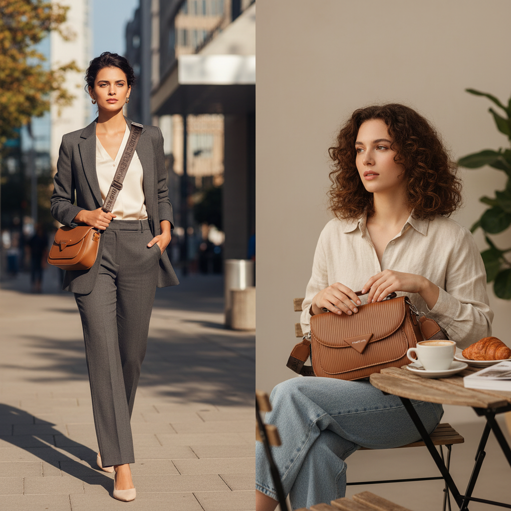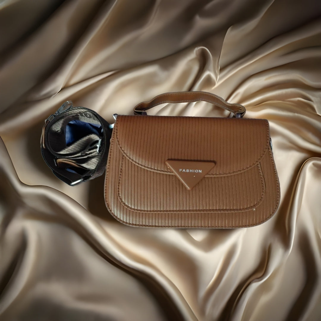 Brun Élite by Shansaé is a beautifully crafted brown handbag designed for everyday elegance. Featuring a spacious interior with refined detailing, it measures 23 cm (L) × 18 cm (H). It includes a detachable sling belt for added convenience, making it perfect for both casual and polished looks.